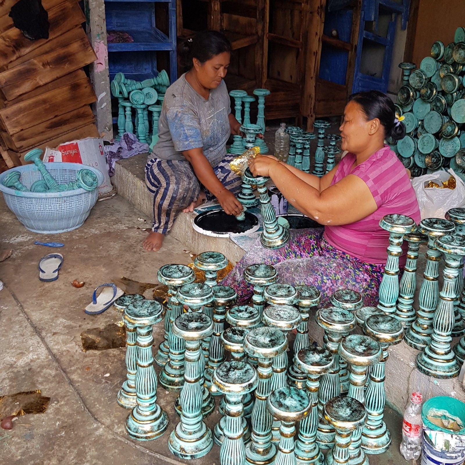 These romantic candlesticks are made from sustainable Albesia wood hand carved ornate candlesticks ideal for holding Church Candles.